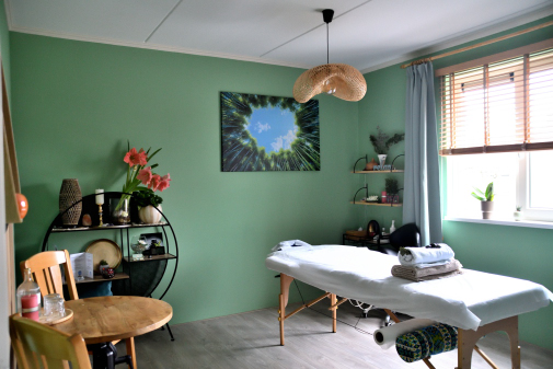 In het rustige, groene dorpje Bentelo, centraal in Twente heb ik in mijn vrijstaande woning een massageruimte gecreëerd waar ontspanning en aandacht centraal staan. Een plek waar je even helemaal weg bent van de drukte van alledag en kunt genieten van rust, warmte en persoonlijke zorg.